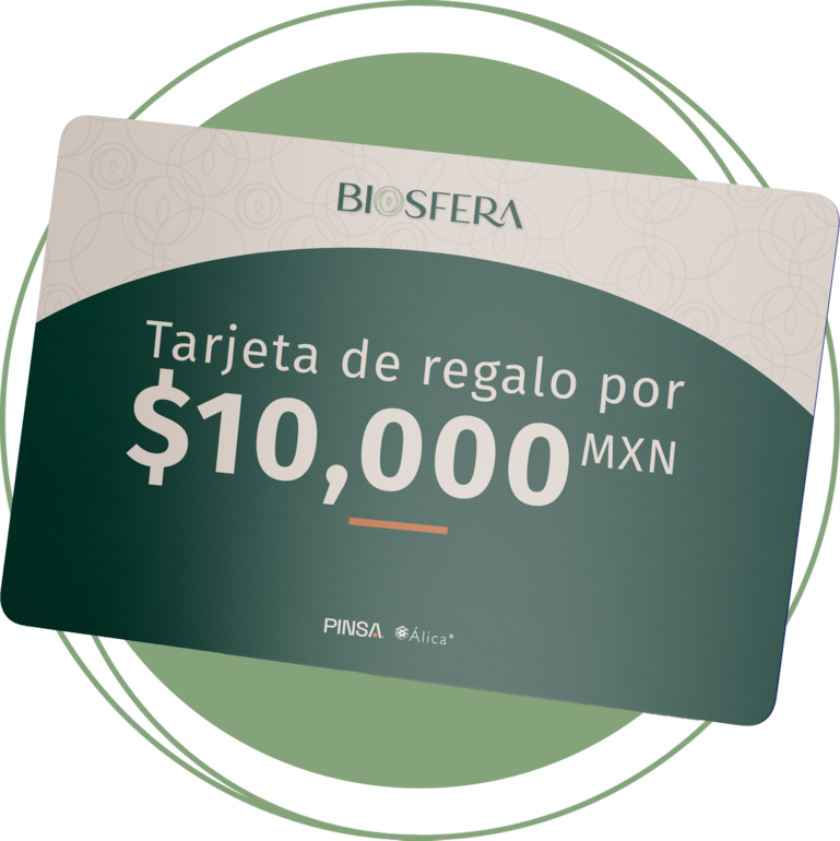 Si recomiendas Biósfera a alguna persona de tu círculo íntimo y finalmente decide comprar un lote y formar parte de nuestra comunidad, te obsequiamos una Tarjeta de Regalo Amazon por MXN$ 10.000.-